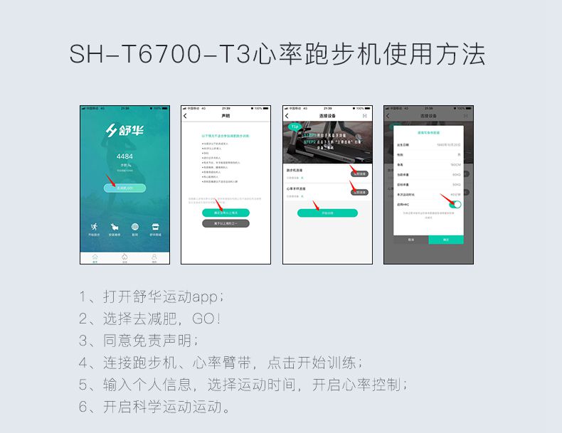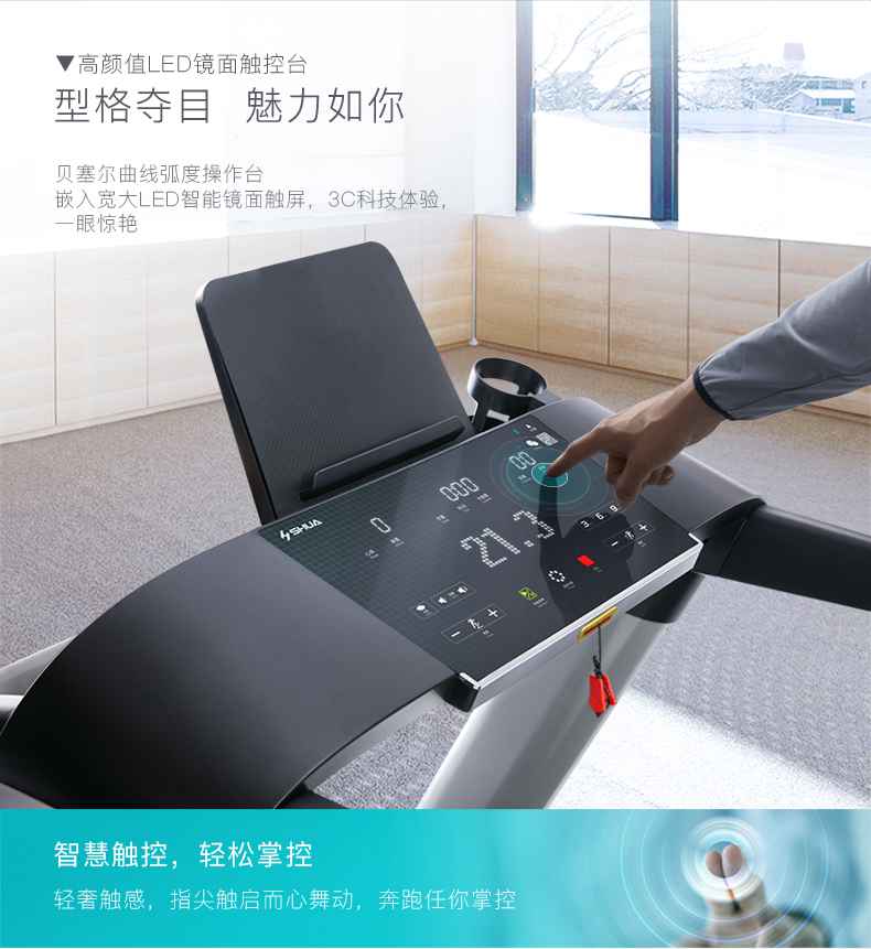 SH-T6700-T3跑步机为了帮助用户进行更加科学有效的运动,搭载jiuyou.comAPP连接心率臂带实现心率控制,通过监测运动心率从而实现科学运动。