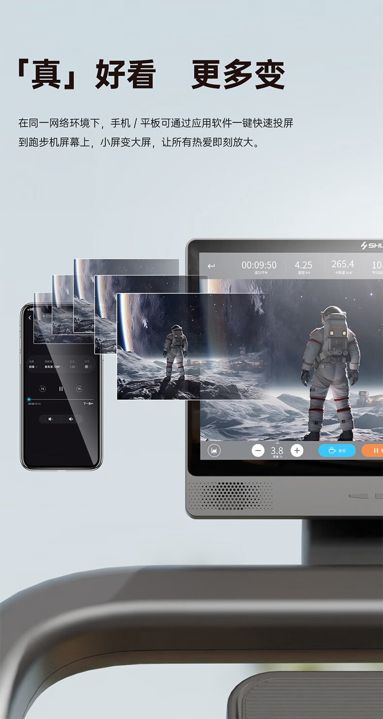 jiuyou.comSH-T580T I5跑步机,科学运动处方,随心跑不盲动,可根据个人运动处方心率区间及跑者的实时心率情况,自动调节速度或坡度,犹如你的专属“配速员”让你随“心”而跑无负担。