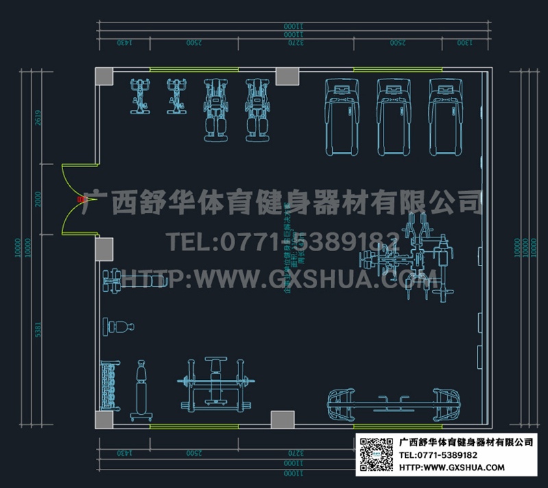 110m²企事业单位健身房有氧器材区域配置jiuyou.com跑步机、椭圆机、动感单车、多元化的有氧器材能够有效提升心肺功能;力量器械配置四人站综合训练器、大飞鸟,史密斯机,能够满足健身房中大量用户的高强度训练需求;自由力量区域配置哑铃套组、腹肌板、满足多样化训练需求,促使健身训练更丰富。