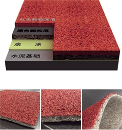 混合型塑胶跑道产品特点: 混合型塑胶跑道由全PU掺杂部分橡胶颗粒为底层,聚氨酯颗粒与塑胶浆为面层铺设组成的高性能塑胶结构。它是国际田联认可的运动场地,可全天候使用,雨后能立即使用。 混合型塑胶跑道具有环保、全天候使用、弹力好、冲击力吸收、耐候性、耐磨性、耐压缩、抗钉力、耐冲击、平坦性、粘接性等特点、实用性强、日常维护简单易行。混合型塑胶跑道价格适中,适合各级标准比赛、训练体育运动馆、各大群体活动运动场。 适用范围: 各级各类学校及体育场、田径场跑道、全民健身路径、室内体育馆训练跑道、游乐场道路铺面。
