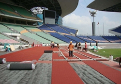产品特点: 1、预制式塑胶跑道具有安全、环保、优异的耐候性,经济耐用,多色彩效果。 2、安装便捷,只需使用我们配套提供的专用粘接剂,在少量人力和机械条件下,即可将跑道卷材铺贴在密实的基础上,安装完全跑道在24小时后即可投入正常的使用。 3、预制式塑胶跑道具有环保、全天候使用、弹力好、冲击力吸收、耐候性、耐磨性、耐压缩、抗钉力、耐冲击、平坦性、粘接性等特点、实用性强、日常维护简单易行。不可使用高寒冰雪地区。 适用范围: 各级各类学校及体育场、田径场跑道、全民健身路径、室内体育馆训练跑道、游乐场道路铺面。 |