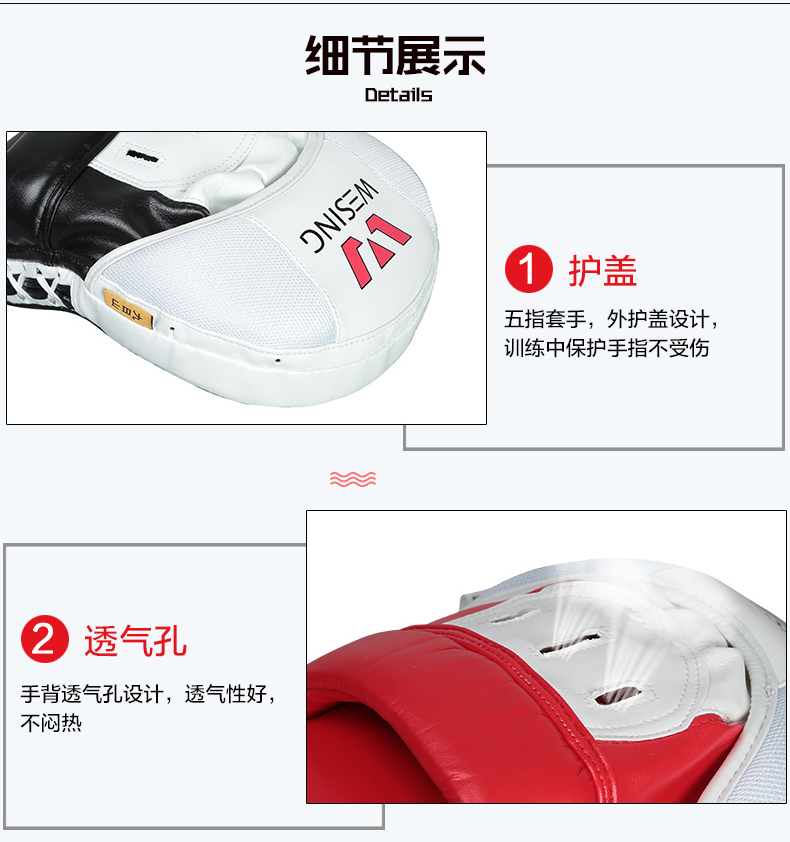 系绳封边,牢固耐用,排气性好,释放击打压力